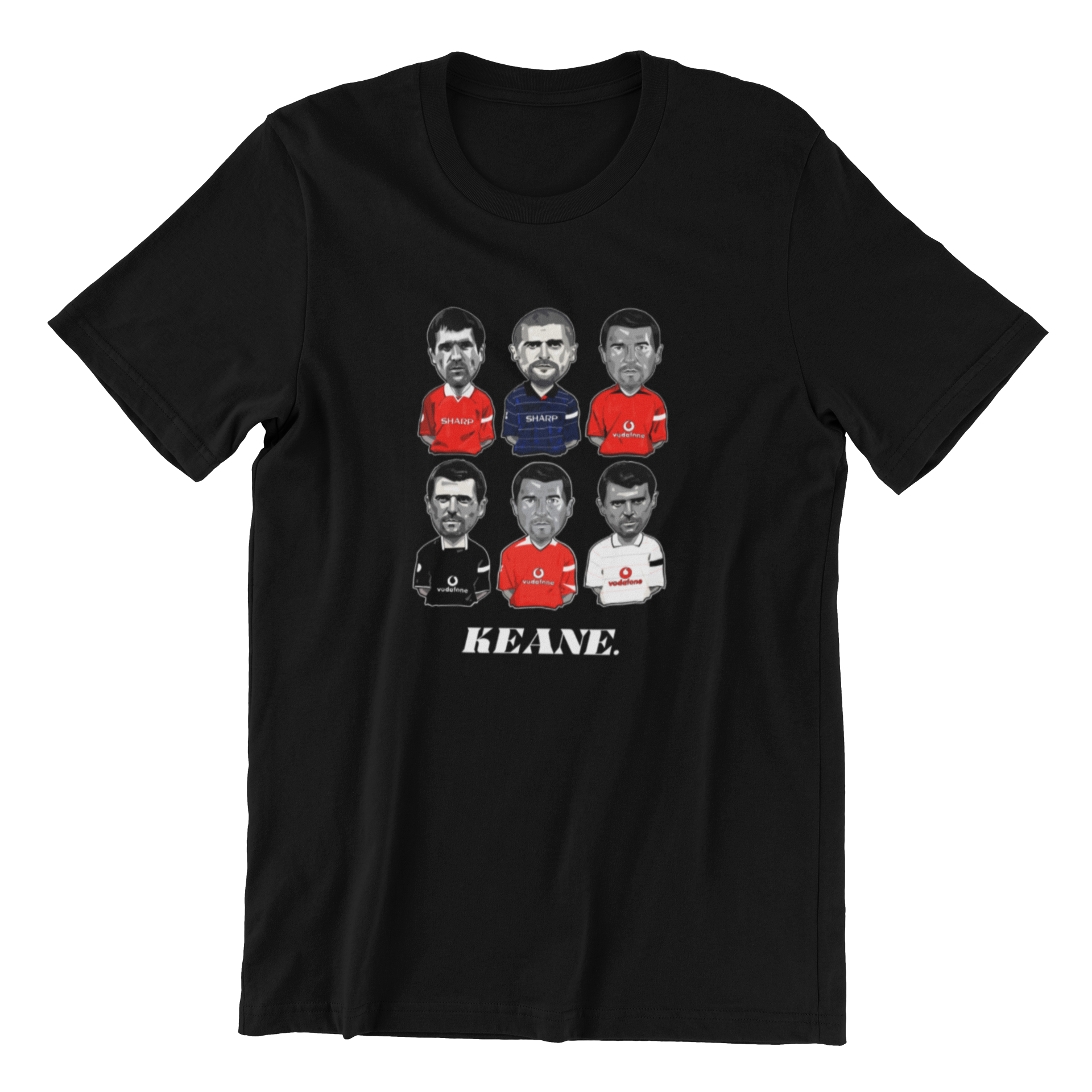 Keano at United down the years featuring the iconic kits.