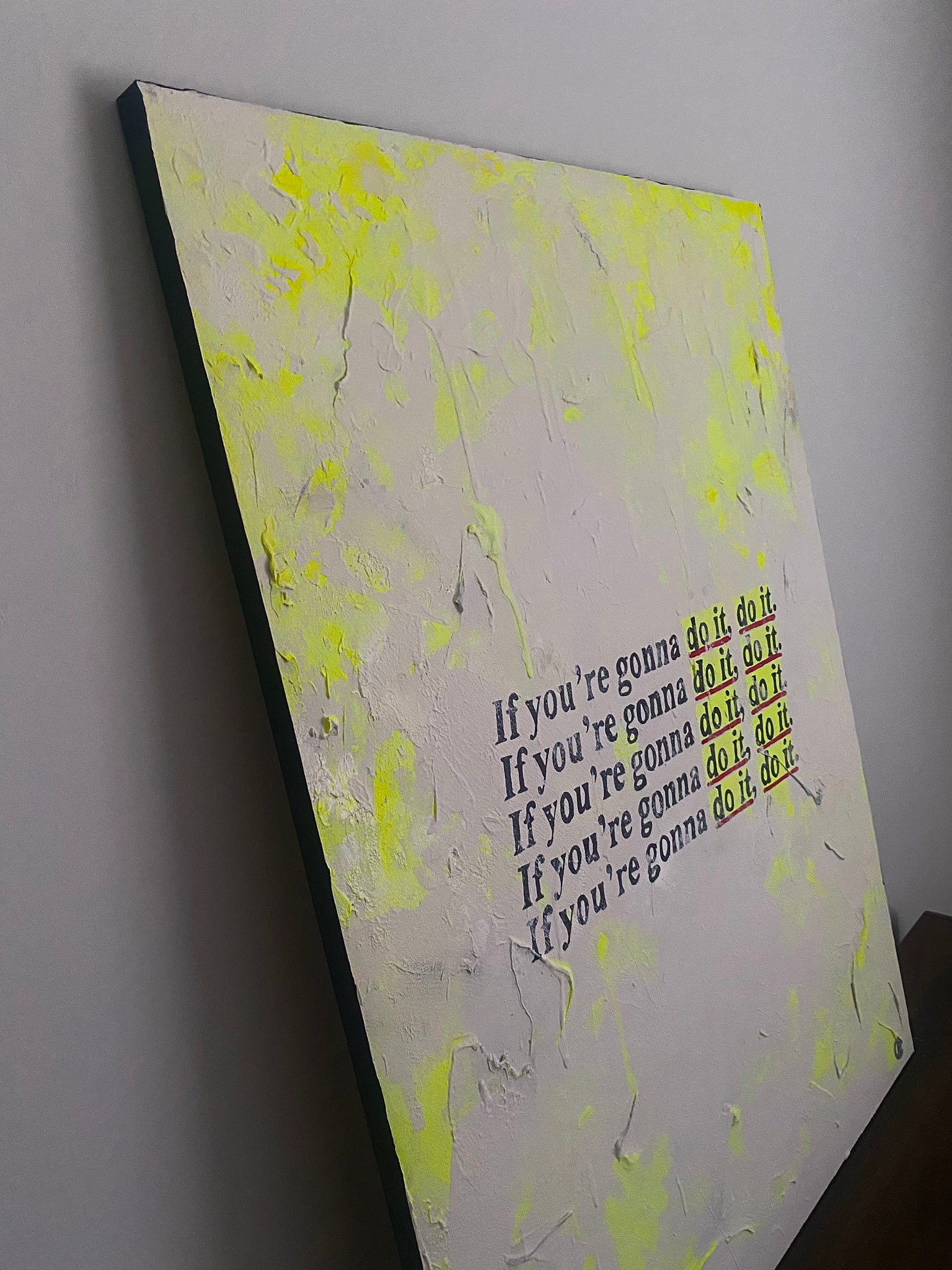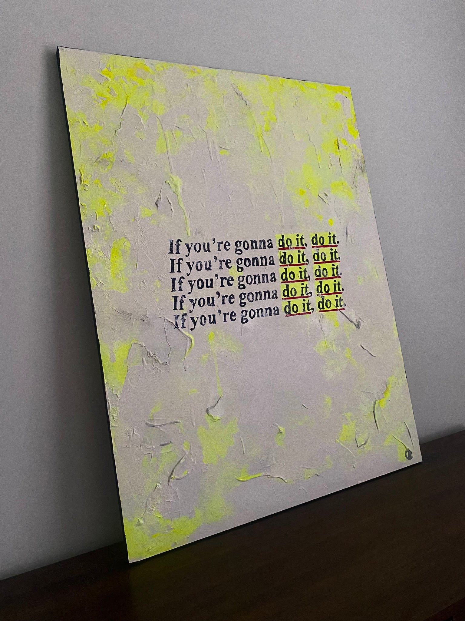 Original painting inspired by some Matthew McConaughey motivational quotes that we can all relate to. Multiple layers of premium acrylic paint and texture paste on a large wood panel to create texture and depth. Black painted edges for a modern effect.